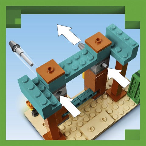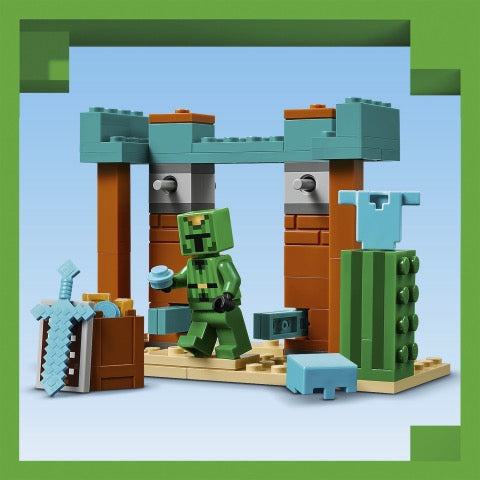 • Spelleksak med ökenslott – Detta lilla LEGO® set för barn är fullt av Minecraft® stridsaction där barn måste skydda en tunna med skatter