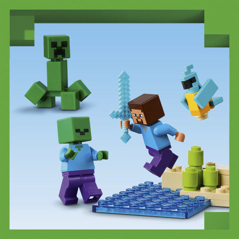 • Samlarmodeller från Minecraft® spelen – Leksaken innehåller minifigurer av Steve, en Creeper™ och en zombie, plus tillbehör som en fisk, ett fiskespö och en papegoja för att inspirera till fantasifulla lekar för barn