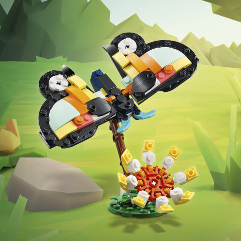 • 3 tropiska djur i 1 låda – LEGO® Creator 3in1 Vilda djur: Tropisk tukan låter flickor och pojkar från 7 år bygga och bygga om 3 djurlekset med samma klossar