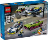 • Polisbilsleksam för action med skrikande däck – Polisjakter väntar med leksetet LEGO® City Jakt med polisbil och muskelbil för barn från 6 år