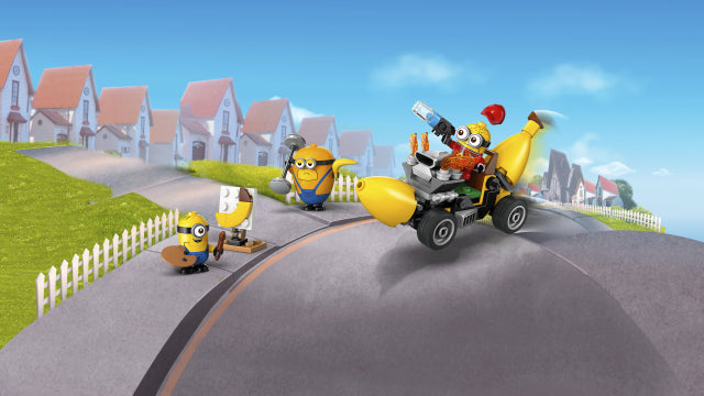 • Filmleksak med minioner – Innehåller ett bananfordon för barn med löstagbar motor, minionerna Mel, depåminionen Ron, den hemliga A = VL-agenten Tim och megaminionen Dave, plus massor av tillbehör